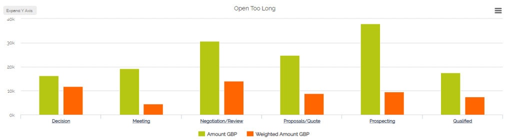 Not all customers are the same, so you can expect a certain degree of fluidity when it comes to closing deals. But you will have a rough idea as to how long you would like Opportunities to be open. Therefore, set a flag to show when they have been longer than that given period. As well as seeing this on-the-fly on the Opportunities home screen, this information forms the basis of a really useful report.